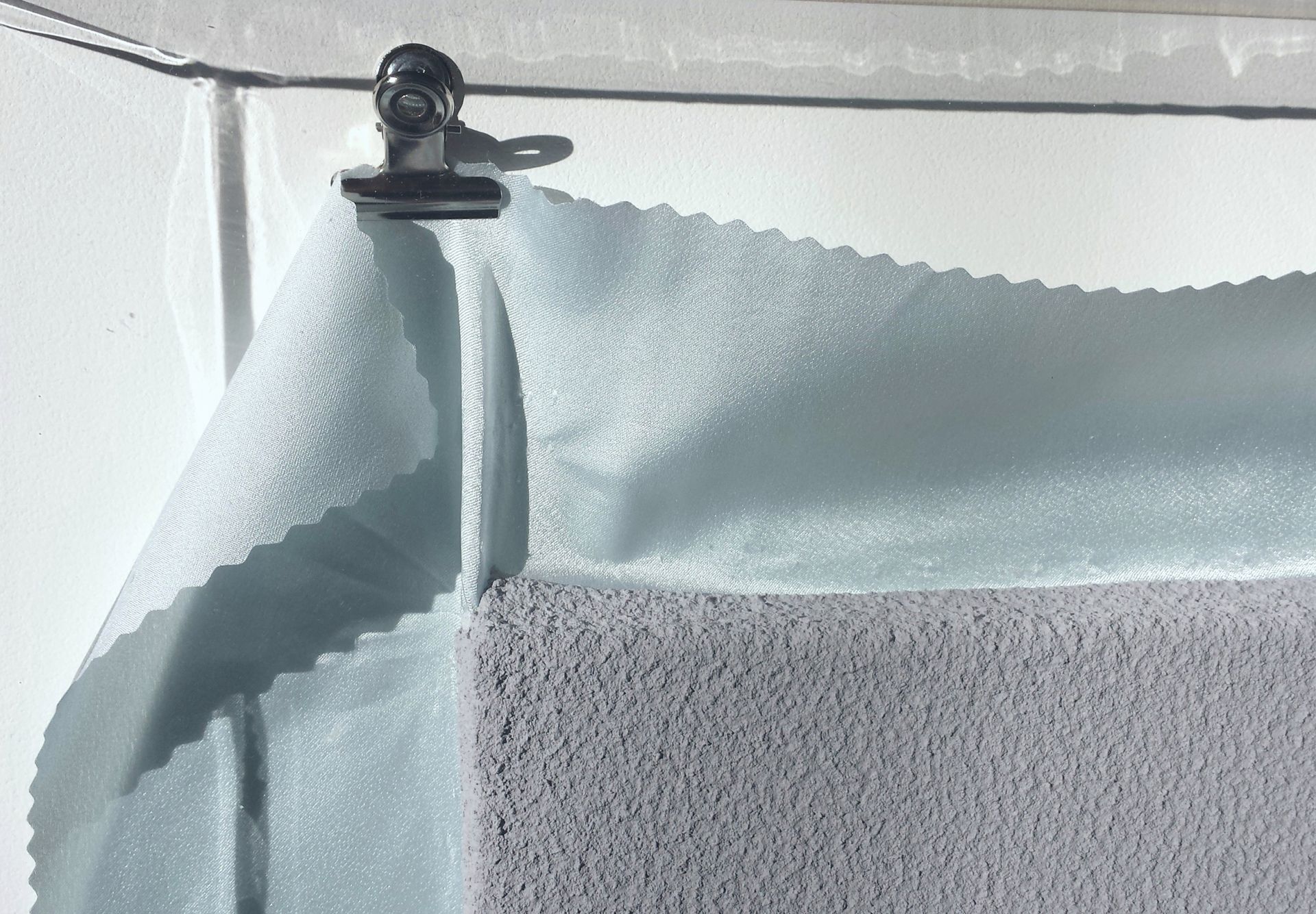Más típusú képeinél a hagyományos festővászon helyett hordozóként megjelenő, iparilag színezett szatén vagy selyembélés és annak befestett felülete kerül a képzeletbeli mérleg két serpenyőjébe. A sokszor látványosan irizáló textília felfeszítésekor bő ráhagyással a vakráma mögé kerül, a betűrt anyag így a festés fázisában még láthatatlan. A feszített szövetre rétegekként felhordott, egy színre kikevert festék bársonyszerű, máskor vakolatszerűen erős matéria. Száradás után a vakráma hátoldaláról visszabontott és kihajlított textilhalom dús körítést ad a festett mezőhöz. Ugyanakkor olyan mű is akad, amelynél csak a sarkoknál, rügyszerűen bukkan elő a hordozó.